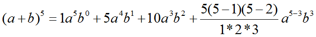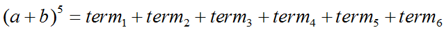 Here, we have a binomial that will have six terms (remember that the number of terms is equal to the degree + 1).