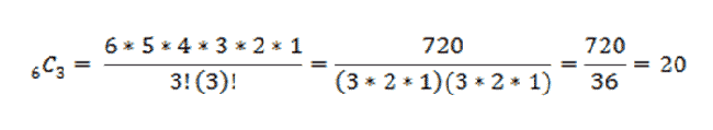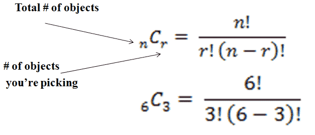 In a combination, order does not matter. All six of those answers found above are really the same thing. So, there are 120 / 6 = 20 different combinations of animals that we could run into.