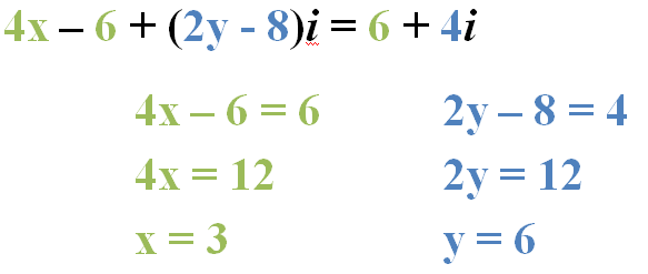 To solve this equation, set the real parts equal to each other, and set the imaginary parts equal to each other.
