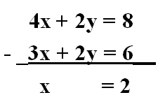 Sometimes, subtracting one equation from the other will allow you to remove a variable, and then solve for the remaining variable. This is called Elimination by Subtraction.