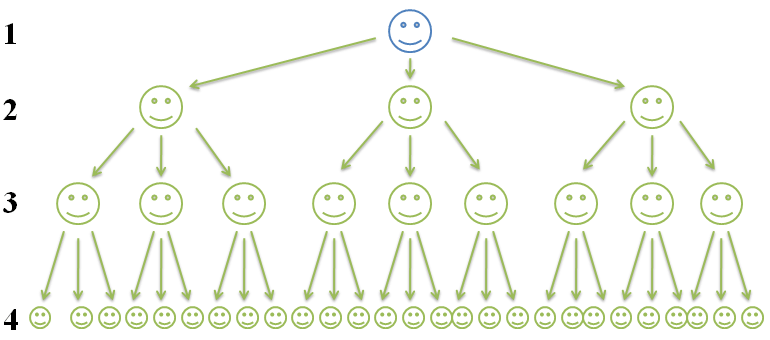 Imagine you have a secret. You tell 3 friends, who each tell 3 friends, who then tell another 3 friends. This is an example of a geometric series.