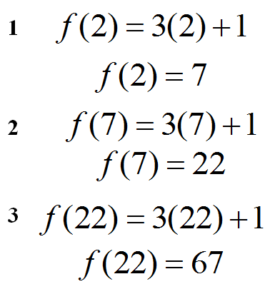 The first three iterates are 7, 22, and 67.