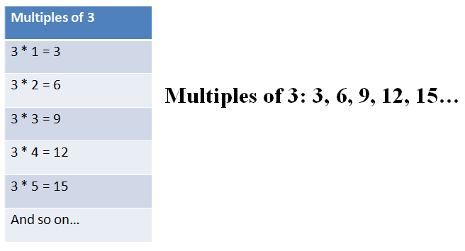 Multiples of 3: 3, 6, 9, 12, 15…