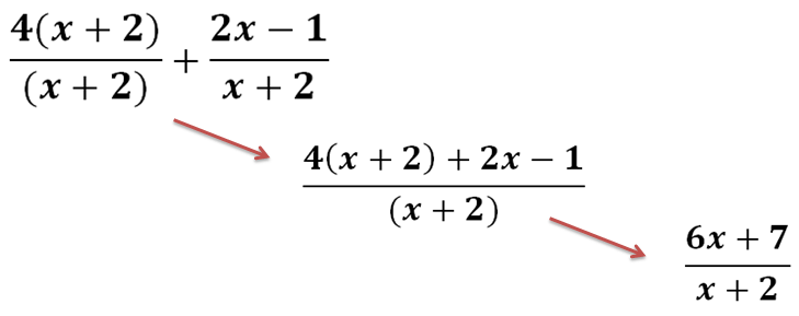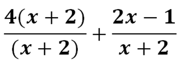 The least common multiple is (x + 2). By adding this to our monomial, it now has the same denominator as the rational expression and can be added: