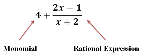 Above, we have a mixed expression. It consists of a monomial and a rational expression.