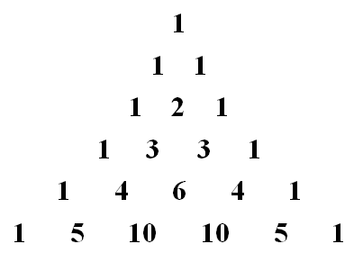 Above, we have Pascal's Triangle. Moving downwards, each new term is the sum of the two terms directly above it.