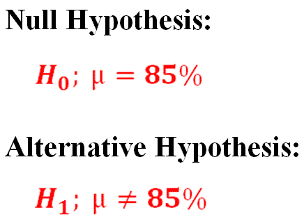 In reality, the school we sampled from either has a passage rate of 85% (our null hypothesis) or it has something different than 85% (the alternative hypothesis). We haven’t measured the entire school, we only measured a sample of students. The decision we make will be based on the characteristics of the sample we’ve taken and what we know about the probabilities associated with the normal curve.
