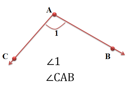Here, we have an angle Angle. We can call it either angle CAB (or BAC), or angle 1.